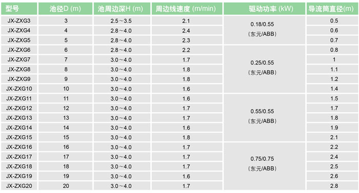 橋架式中心刮泥機的型號及參數(shù)表